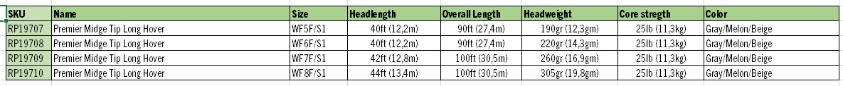 Rio Midge Tip on huippuluokan perhosiima järvikalastukseen. Se yhdistää kelluvan pääosan ja uppoavan tipin: valittavana on joko 3ft tai 6ft kirkas intermediate-tippi (vajoaa 1,5 tuumaa sekunnissa) tai hover-tippi (vajoaa 1 tuuma sekunnissa). Siima soveltuu erinomaisesti mataliin vesiin, tuulisiin päiviin ja kalastukseen kasvillisuuden yläpuolella. Coldwater-ydin takaa pehmeän käsiteltävyyden, ja SlickCast-pinnoite varmistaa kestävyyden ja tasaisen heiton. Molemmissa päissä on hitsatut lenkit helppoon kiinnitykseen.