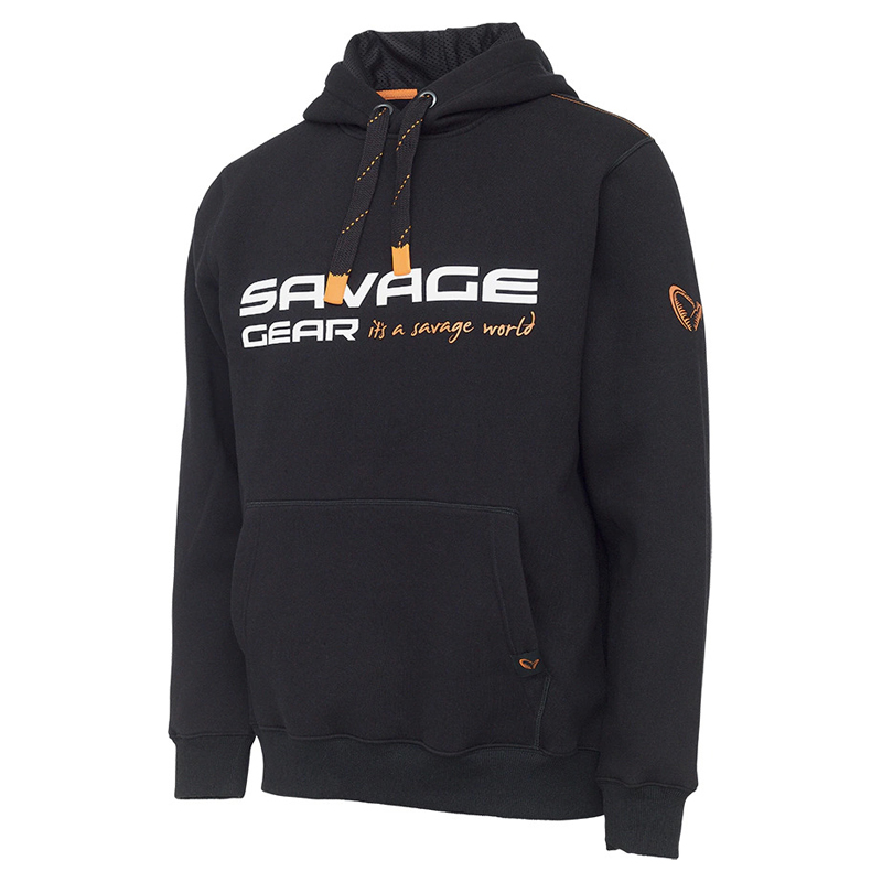 Savage Gear Cosmo huppari, musta muste. Raskas puuvilla/polyesterihuppari, joka sopii erinomaisesti jokapäiväiseen käyttöön ja kalastukseen.