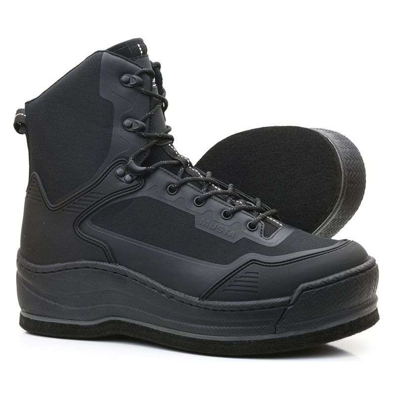 Musta Michelin on suosittu valinta kalastajien keskuudessa, sillä se yhdistää modernin muotoilun ja kestävyyden. TPU-vahvistettu ballistinen polyesteri ja strategisesti sijoitetut TPU-painatukset lisäävät kestävyyttä säilyttäen samalla kevyen rakenteen. Huopapohja tarjoaa erinomaisen pidon märillä jokikivillä ja on varustettavissa volframinastoilla. EVA-välipohja ja kuminen etusuoja tekevät kengästä kestävän ja mukavan.