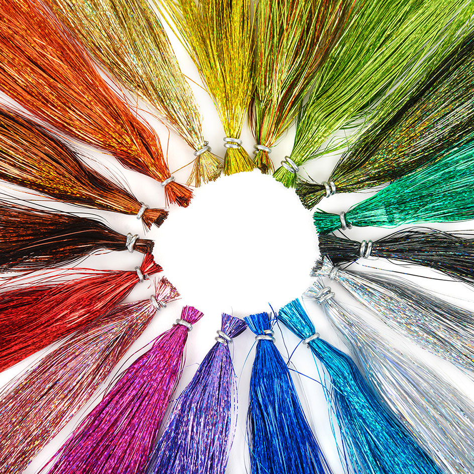 Alkuperäinen glitter-materiaali, holografinen flashabou on uskomattoman hieno kaikenlaisille streamereille, suolaisen veden kärpäsille ja lohikärpäsille.