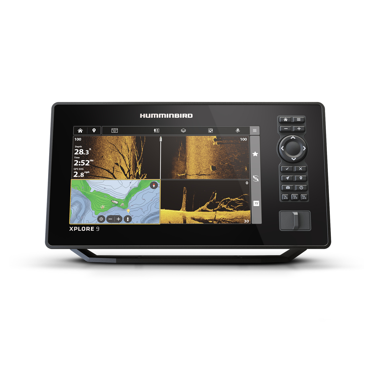 XPLORE 9 CMSI+:ssa on kirkas 9 tuuman HD-näyttö, joka näkyy erinomaisesti myös auringonpaisteessa ja polarisoivilla aurinkolaseilla. MEGA Side & Down Imaging+ tarjoaa laajennetun kantaman ja selkeät kuvat jopa 150 metrin etäisyydelle sivusuunnassa ja 75 metrin syvyyteen. 455 kHz:n taajuudella kantama kasvaa jopa 244 metriin sivusuunnassa ja 122 metriin syvyyteen.