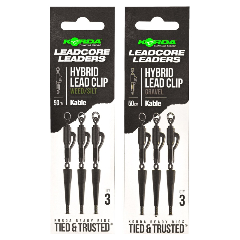 Jokainen leader on valmistettu erittäin kestävästä ja nopeasti uppoavasta Kable Leadcoresta, jossa on Hybrid Lead Clip toisessa päässä ja splitsattu silmukka toisessa, mikä mahdollistaa nopean kiinnityksen pääsiimaan.