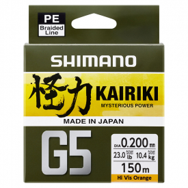 Shimano Line Kairiki G5 150m Orange on 4-säikeinen uppoava punottu siima. Siima, joka antaa sinulle uusia etuja tilanteissa, joissa käytetään kevyitä takiloita, kampiakseleita ja pohjasyöttejä!