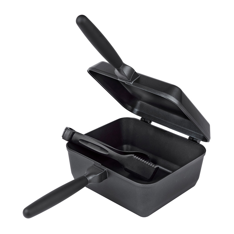 Monikäyttöinen paisto- ja kattilasetti retkikeittiöön. Kaksi pannua, irrotettavat kahvat ja mukana kätevät monitoimipihdit.