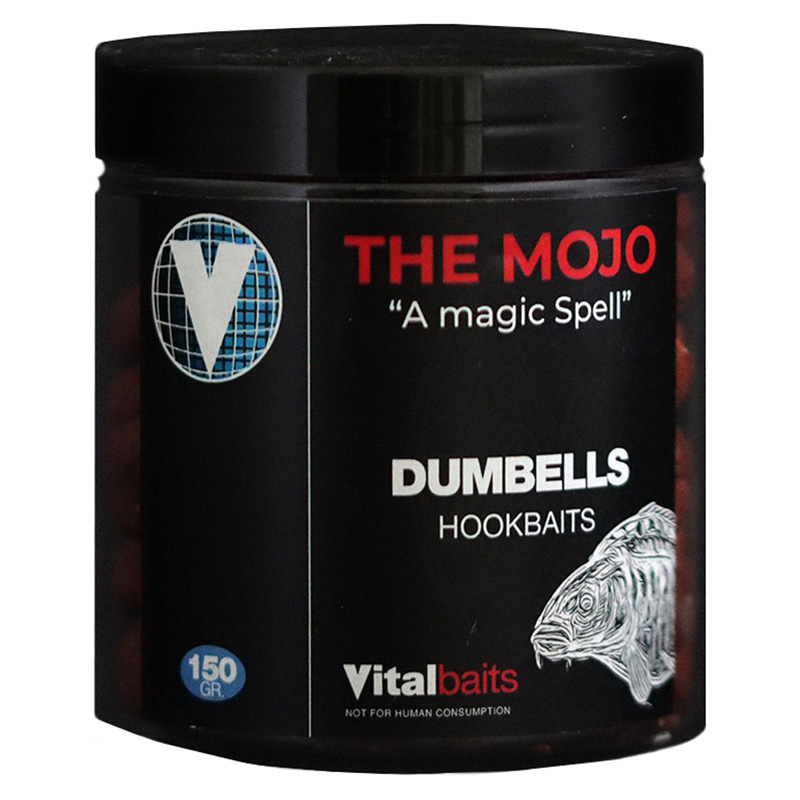 Vital Baits The Mojo Dumbells 10mm 150 g - Olemme käyttäneet alkuperäistä The Mojo Boilie -perussekoitusta ja tehneet niistä hieman kovempia, jotta ne pysyisivät hiuksissa pidempään. Niihin on lisätty lisää houkuttimia/mausteita.