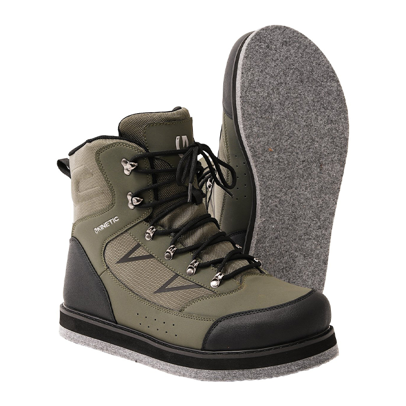 Kinetic Wading Boots -saappaat tarjoavat vakautta kaikissa maastoissa, ja niitä on saatavana kiila- tai huopapohjilla erilaisiin kalastusympäristöihin.